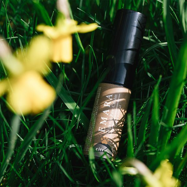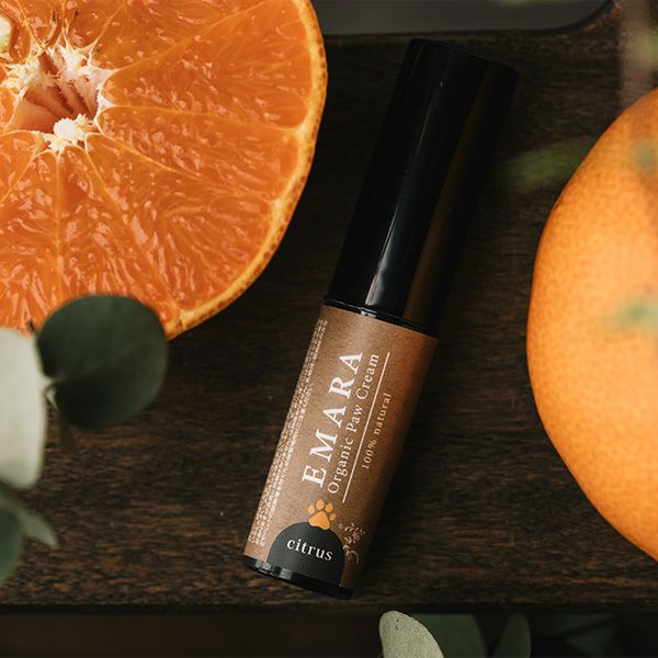自然由来成分100%。愛犬の乾燥した肉球からひび割れなどを防ぐための保湿クリーム。柑橘系のサッパリしたシトラスの香り。