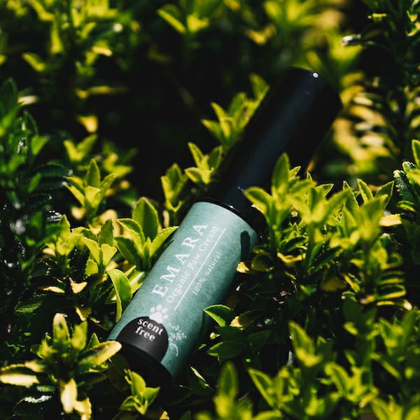 自然由来成分100%。愛犬の乾燥した肉球からひび割れなどを防ぐための保湿クリーム。どんなワンちゃんでもお使いいただける無香料タイプ。