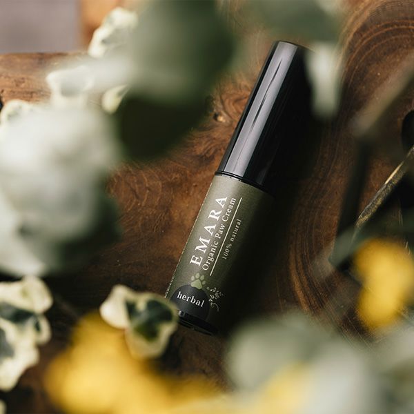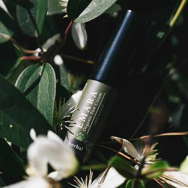 自然由来成分100%。愛犬の乾燥した肉球からひび割れなどを防ぐための保湿クリーム。リラックス効果の高いハーバルの香り。