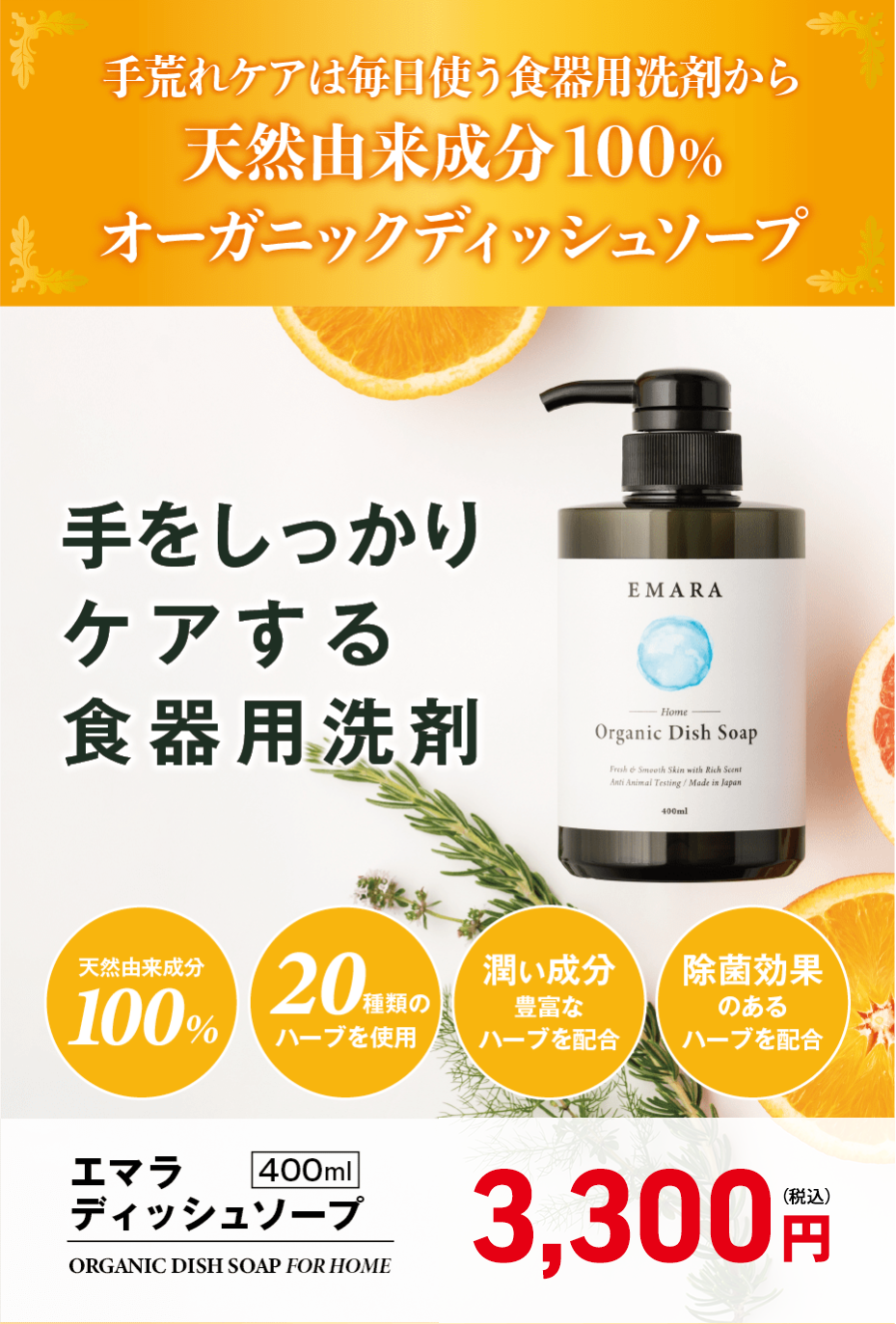 肌荒れ・手荒れにオーガニックハーブのディッシュソープ| EMARA